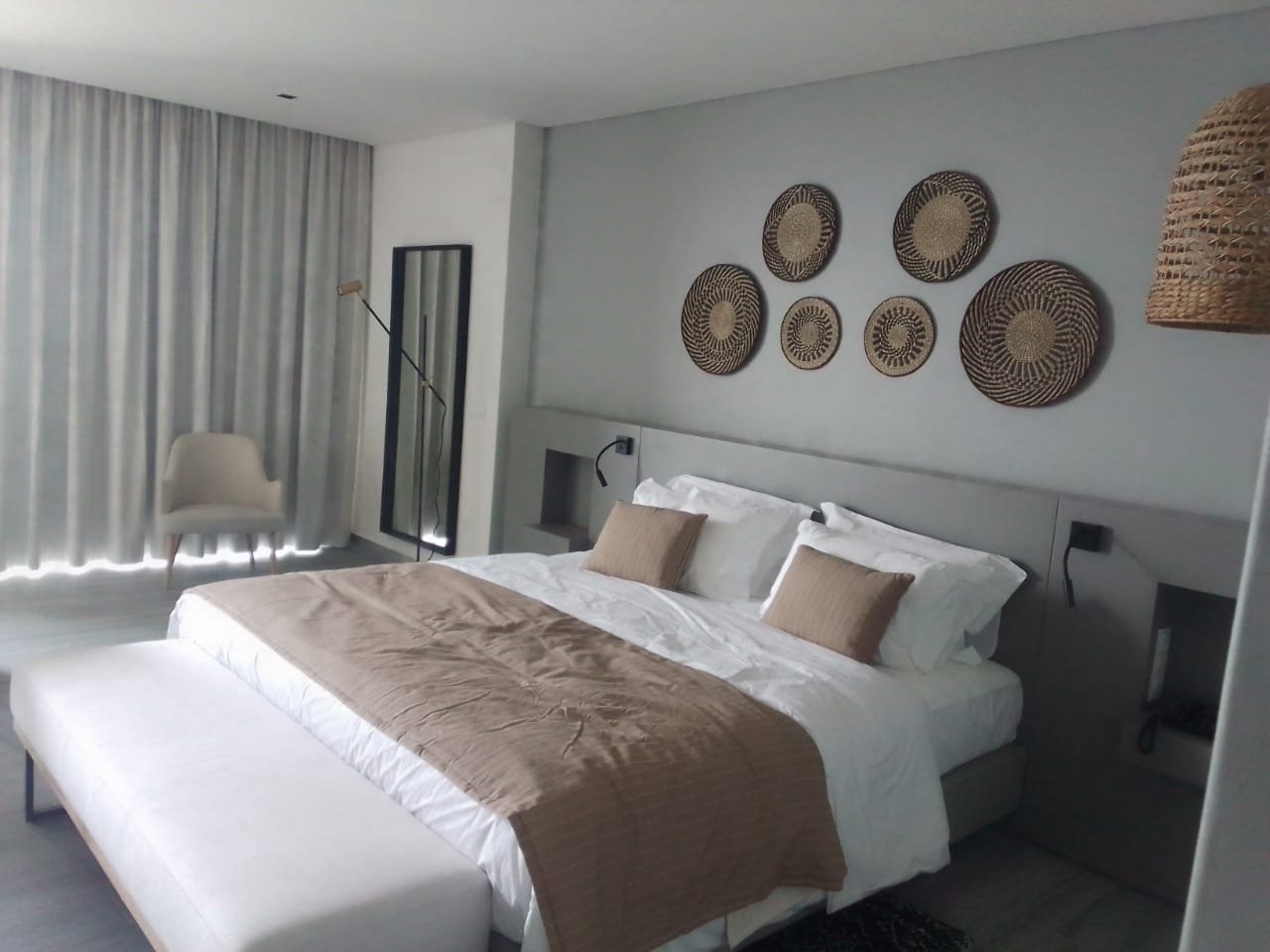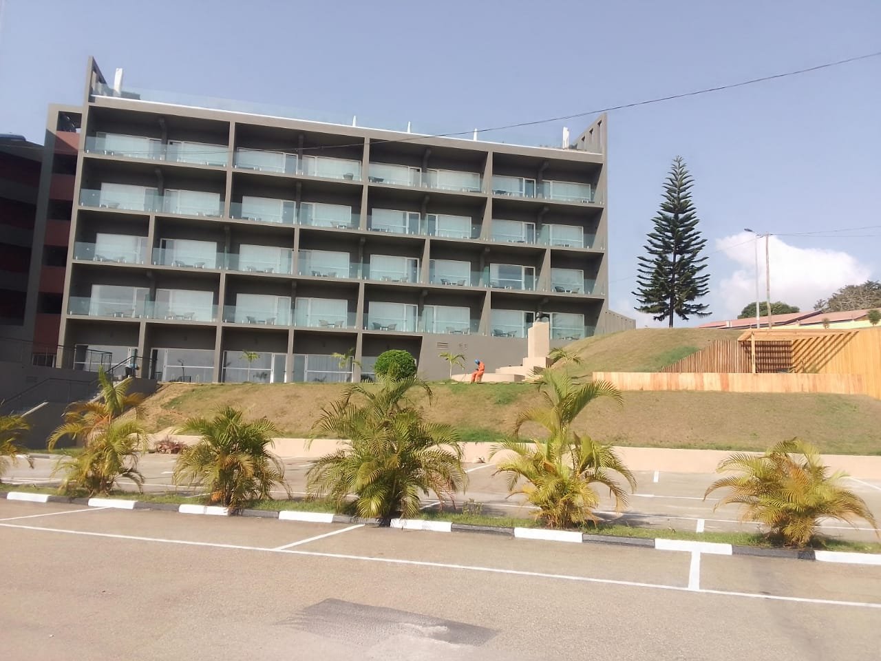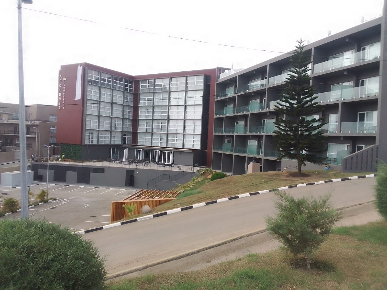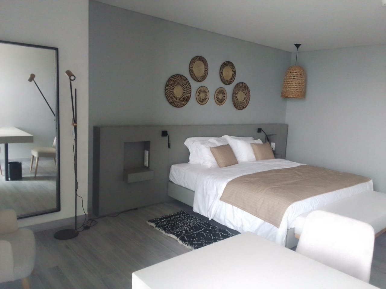 Sugestão de copy: A estrutura existente, do Hotel Apolonia, com uma implantação a rondar 600 m2, permite criar uma estrutura hoteleira de pequena escala de vinte e nove (29) quartos, composta por vinte e três (23) suites e seis (6) master suites com apoio de um restaurante aberto também à cidade.
