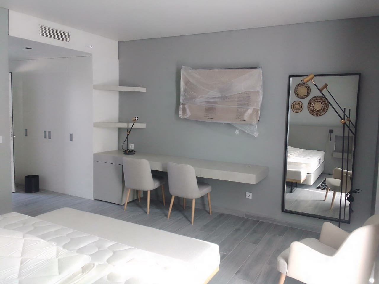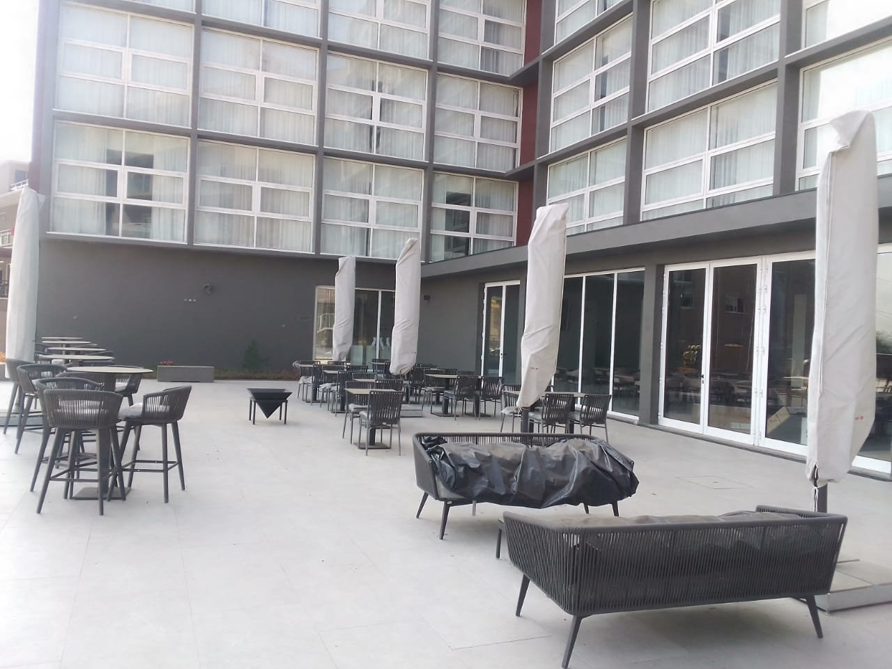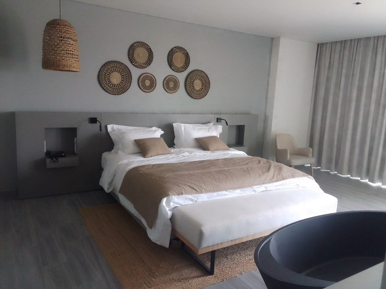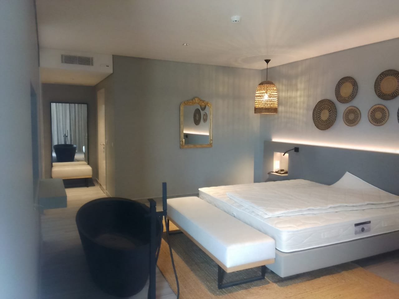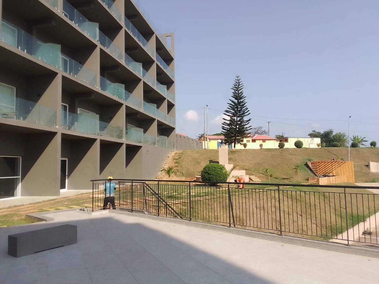Sugestão de copy: A estrutura existente, do Hotel Apolonia, com uma implantação a rondar 600 m2, permite criar uma estrutura hoteleira de pequena escala de vinte e nove (29) quartos, composta por vinte e três (23) suites e seis (6) master suites com apoio de um restaurante aberto também à cidade.